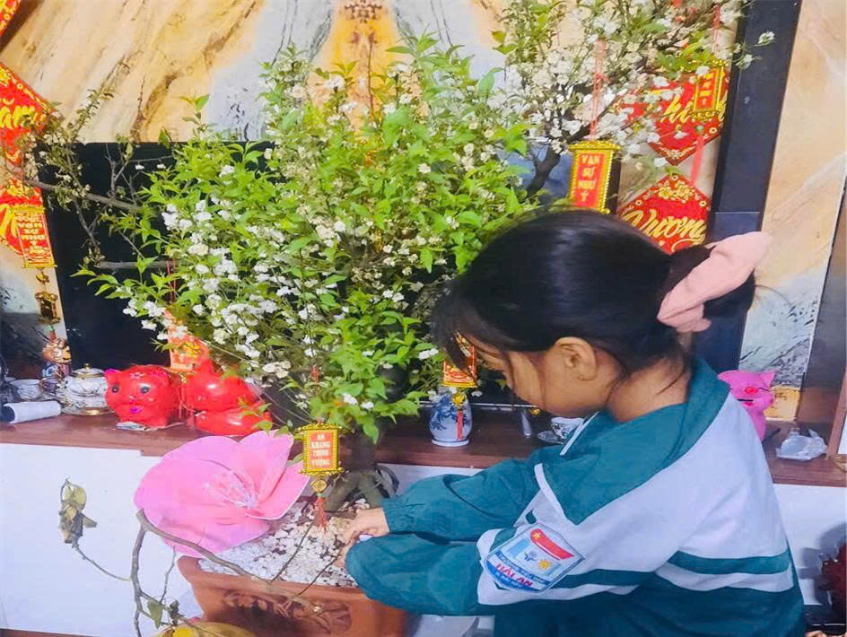 Không chỉ dừng lại ở việc tìm hiểu kiến thức, trong thời gian nghỉ Tết, các em còn tích cực tham gia trải nghiệm thực tế cùng gia đình, góp phần gìn giữ và phát huy những giá trị truyền thống tốt đẹp.